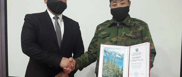 За высокие показатели в области особо охраняемых природных территорий, профессионализм, вклад в решение поставленных перед отраслью задач, Почетной грамотой председателя Комитета лесного хозяйства и животного мира Министерства экологии, геологии и природных ресурсов Республики Казахстан награждены государственные инспекторы.