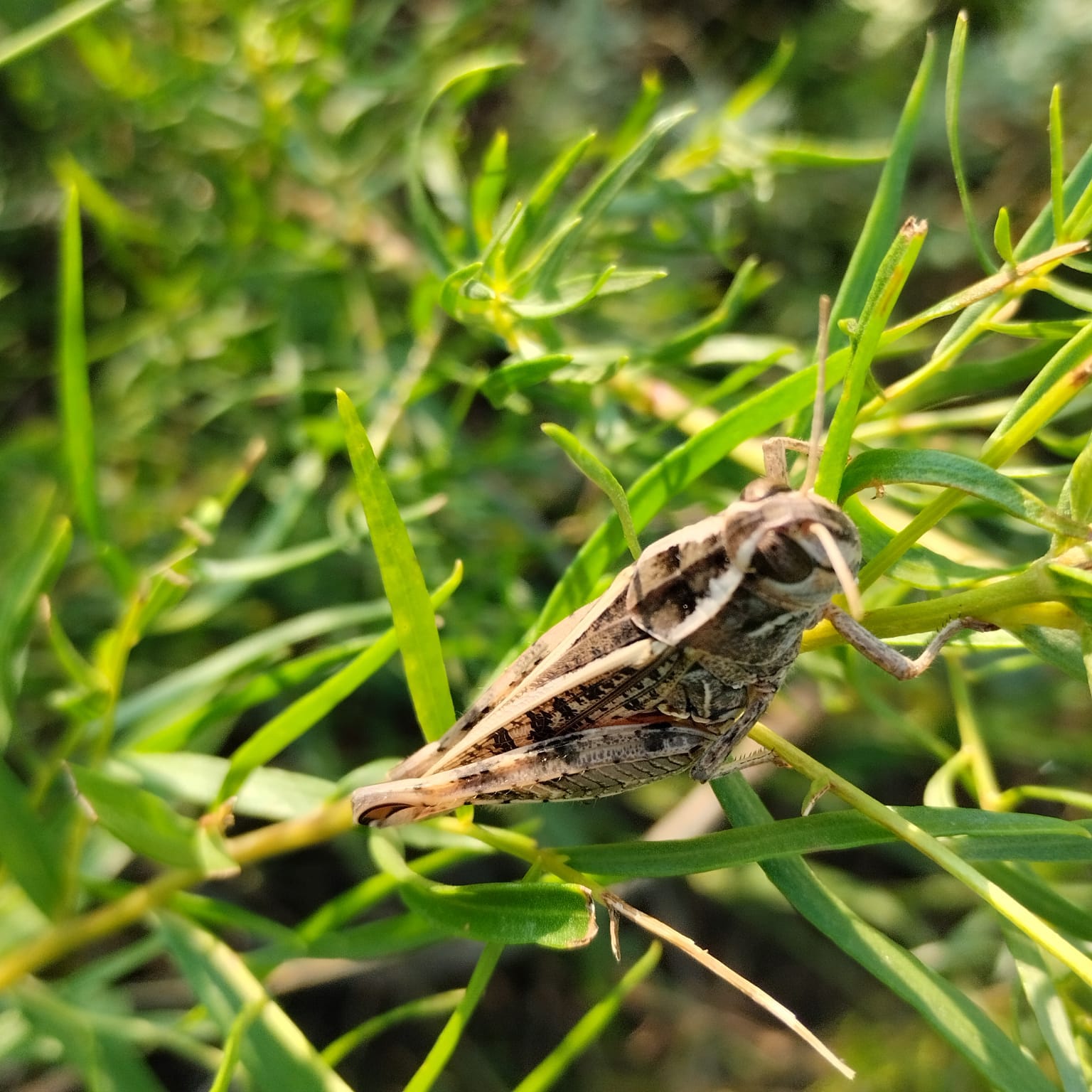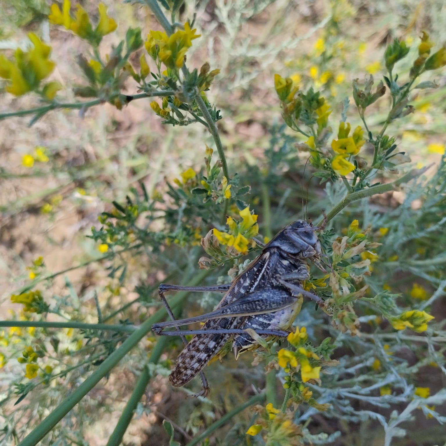 Итальяндық шегіртке (Caliptamus italicus) биік шөпке қонып, күнге қыздырынады. Итальян шегірткелері кең тараған жылдары оны Наурызым қорығының барлық далалық аймақтарында және одан тыс жерлерде кездестіруге болады. Биыл да ерекшелік жоқ.